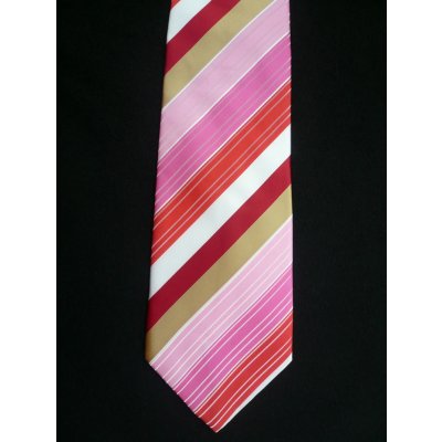 Bold stripes of rose tints with fine highlights make this a unique addition to an executive’s collection. Match this tie with either white or pale pink or pale/French blue for stylish results. Dry clean only.