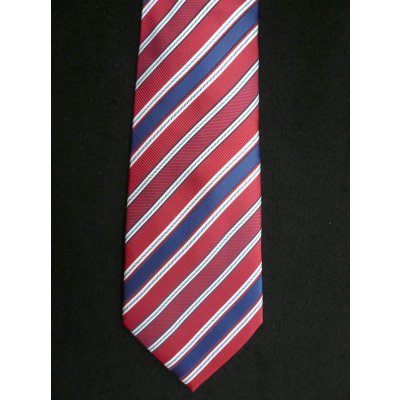 Broad stripes in burgundy and magenta and royal blue are highlighted with white and baby blue to create this bold yet elegant woven tie. Dry clean only.
