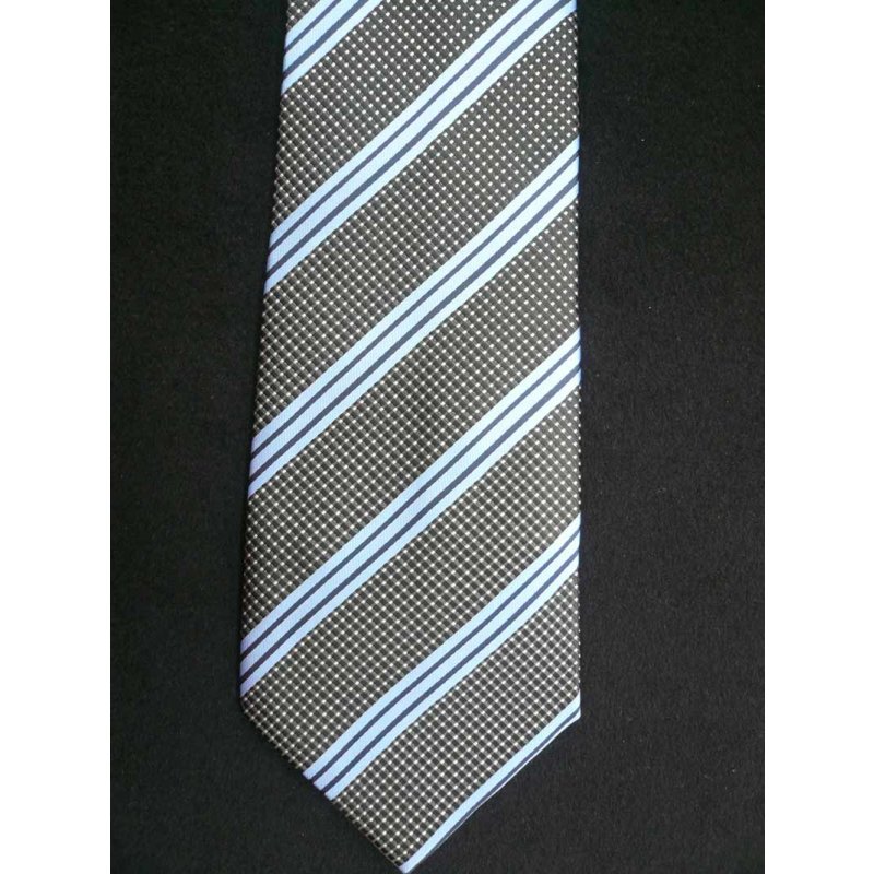 A broad stripe of black and white checks are highlighted by ridged baby and navy blue to create a modern classic which can be paired elegantly with a plain white or light blue shirt. Dry clean only.