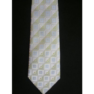 Ridged geometric squares in shades of hunter green, sky blue and white are presented in grid form in this retro-looking yet attractive woven tie which can be paired successfully with a pale blue, light green, or light grey shirt for maximum effect. Dry clean only.