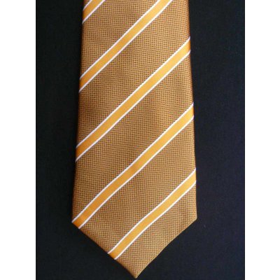 Earthy broad stripes in brown accentuate the ribbon stripe of white-fringed orange to give this woven tie a look of sophistication. Dry clean only.