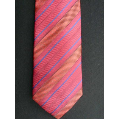 Thin blue stripes on this burnt orange multiple textured woven tie are simply outstanding. This versatile tie can be paired successfully with almost any shirt and suit combination. Dry clean only.