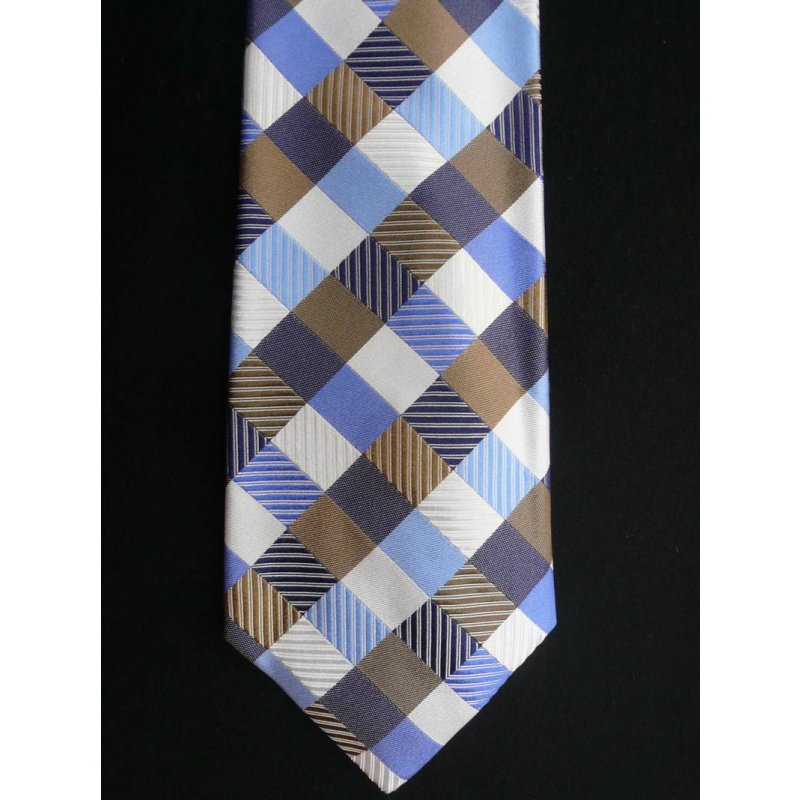 Hues of blues and browns are cheerfully set against each other in this plaid patterned woven tie for that sophisticated look. Dry clean only.