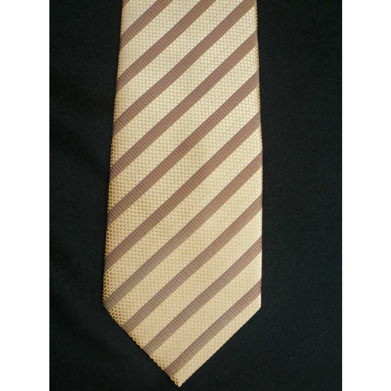 Woven texture of gold with a bold milk brown stripe running through give this tie a versatile yet luxurious look. Dry clean only.